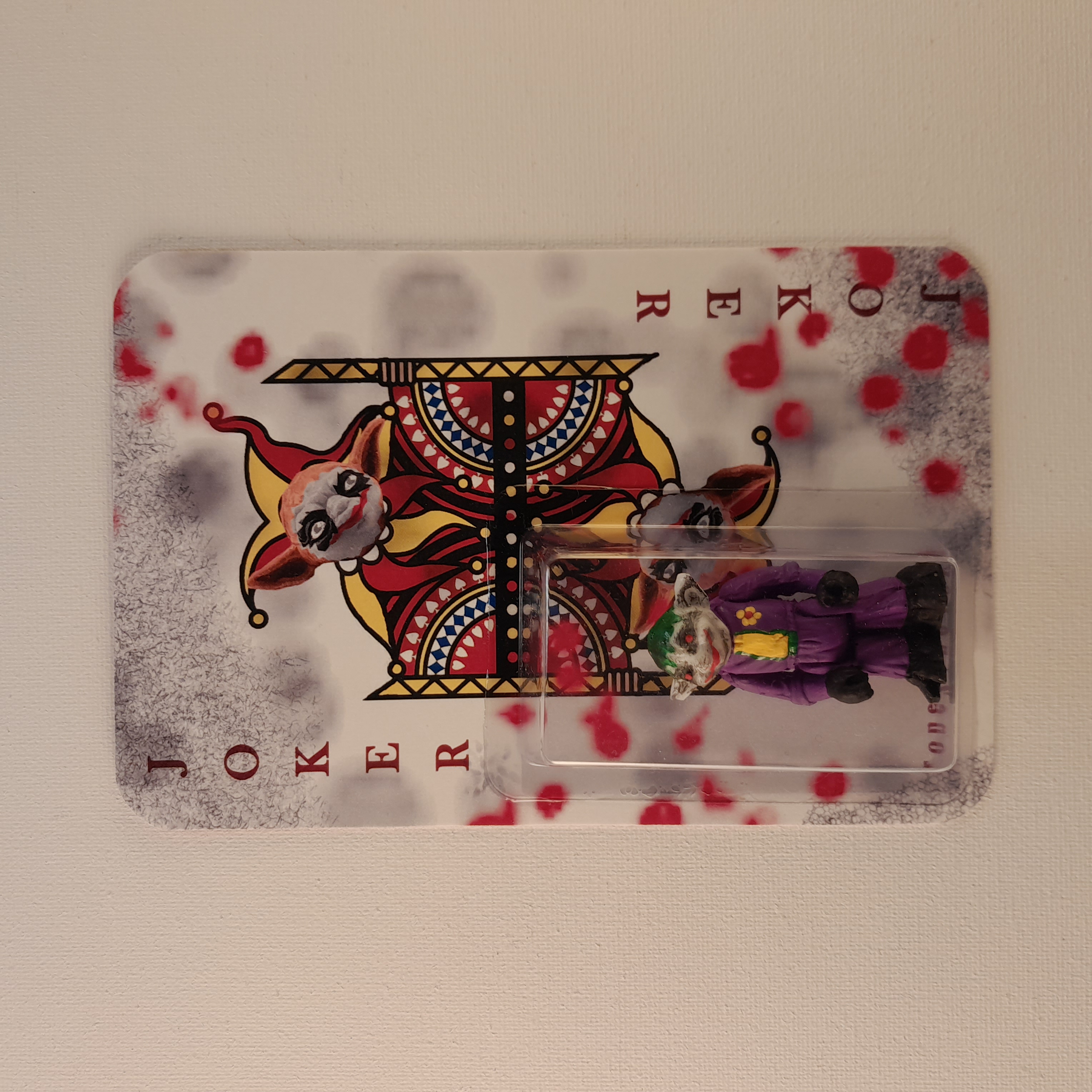 JOKER X YODA mashup on a playing card cardback. Handmade and hand painted resin toy.